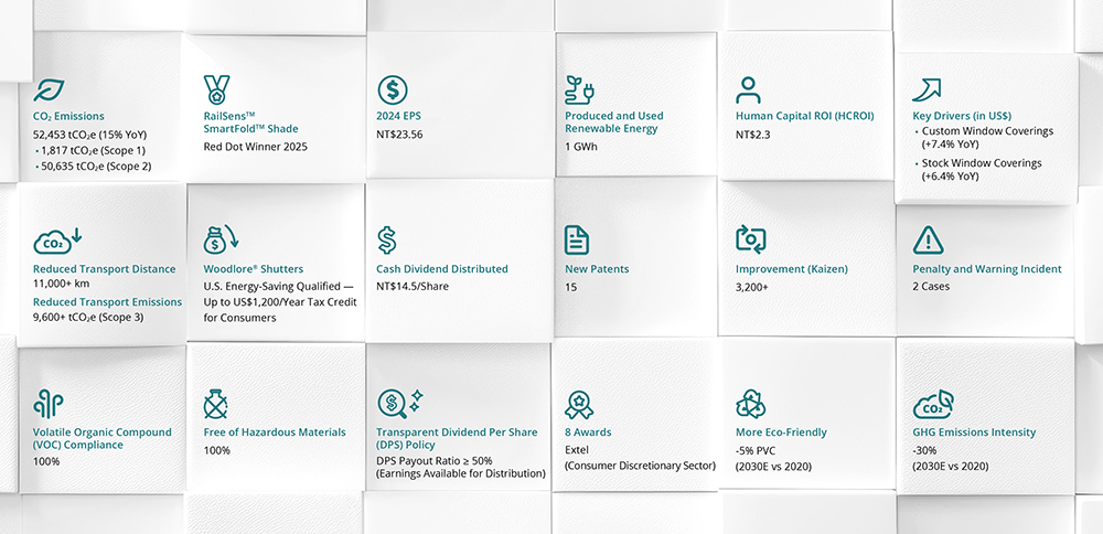 NM continues to enhance quality, reduce working hours, and improve energy efficiency through lean production management. Our relative GHG management target is to reduce Scope 1 and Scope 2 emissions intensity (tCO₂e/US$mn) by 30% by 2030E compared to the 2020 baseline. This reflects our vision of using “less” resources to deliver “more” quality window coverings.